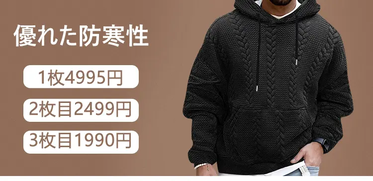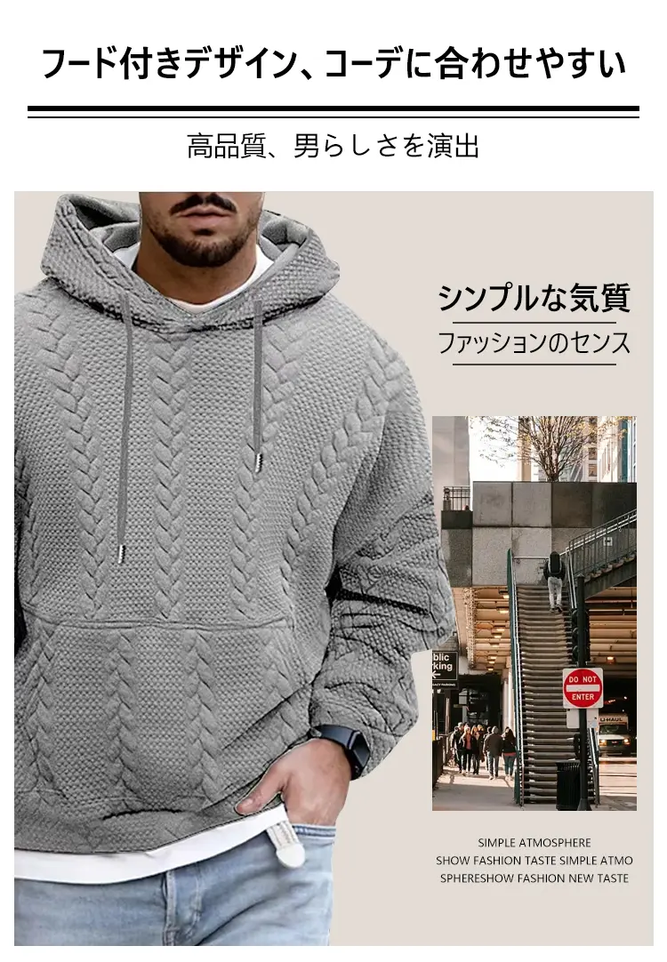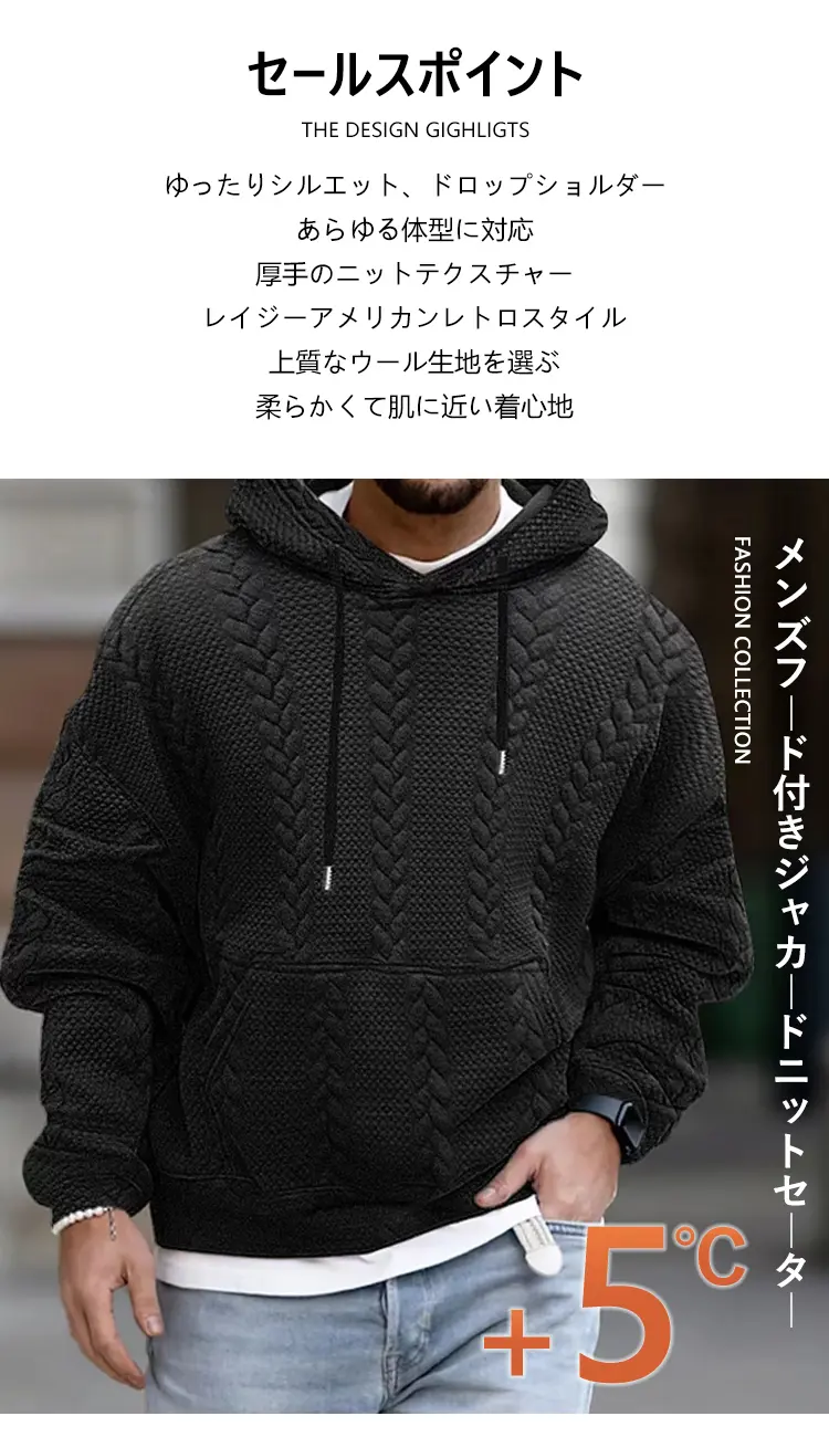 4分前メンズフード付きジャカードニットセーター - 1枚4995円